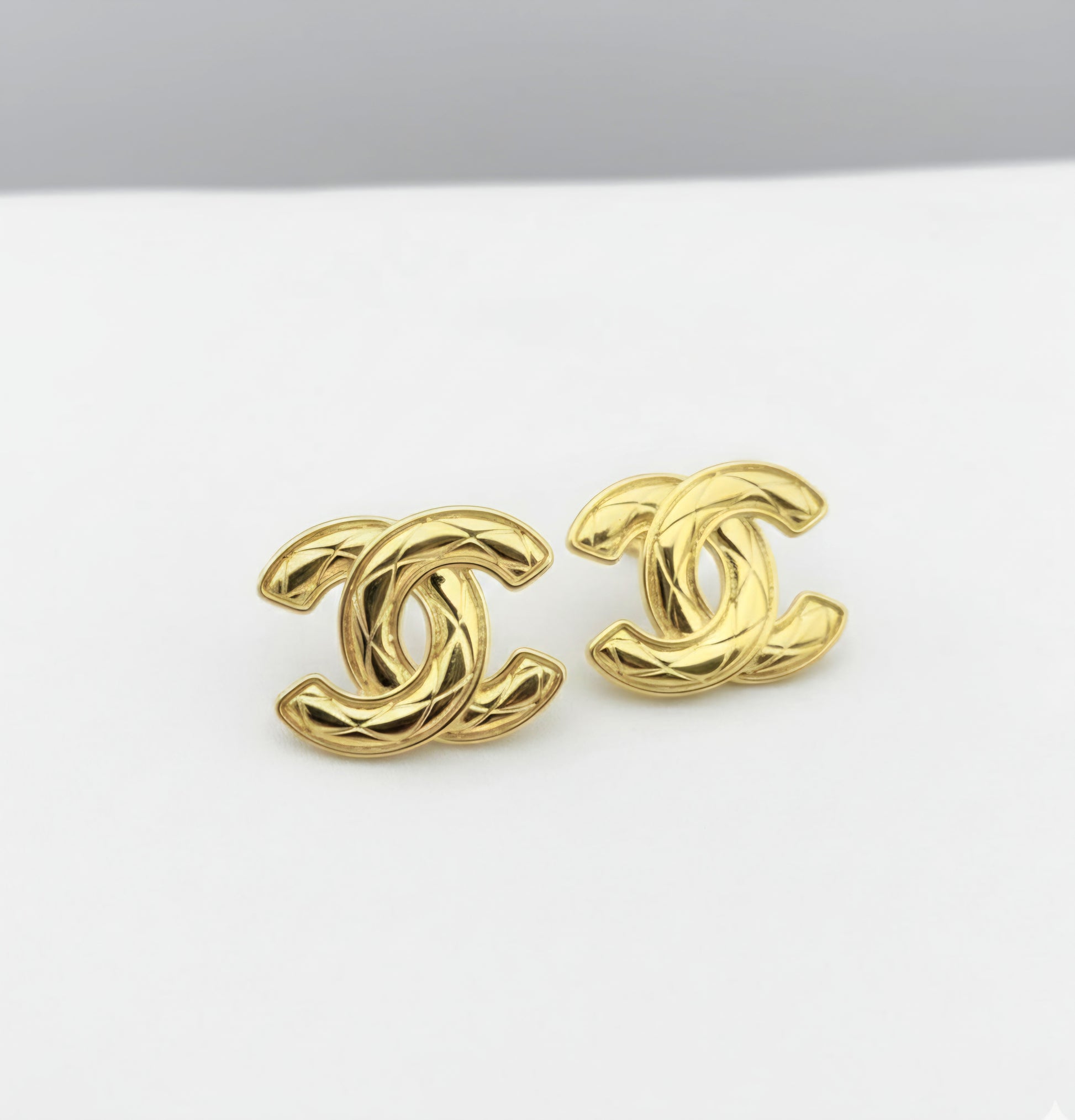 A high quality, tarnish-free Chanel mid size stud cones with a solid box.