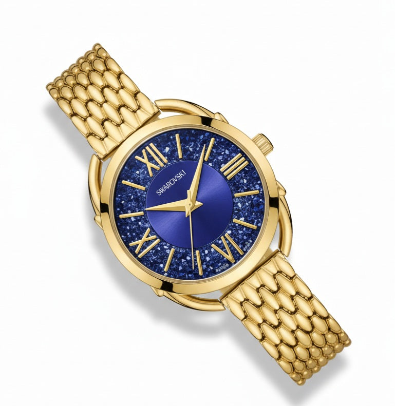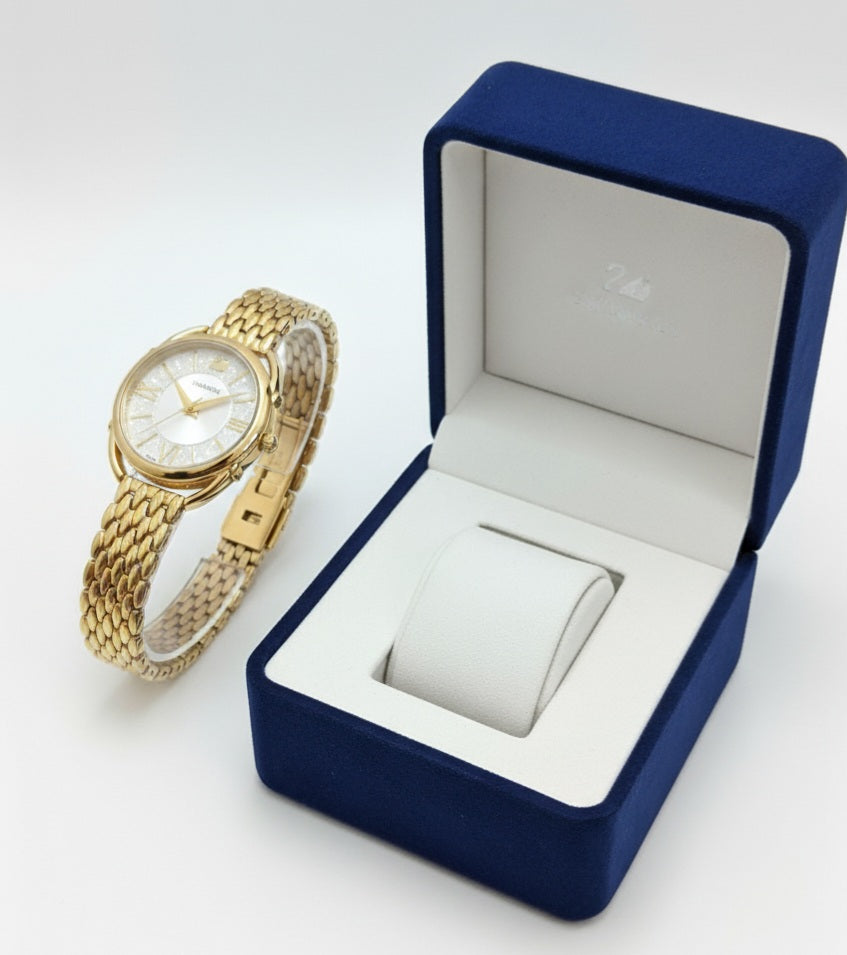 A high quality tarnish free stainless Swarovski steel watch for her. Comes with box